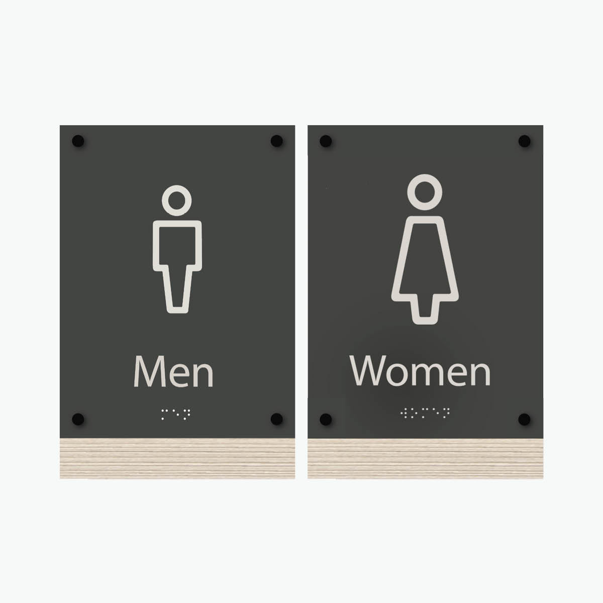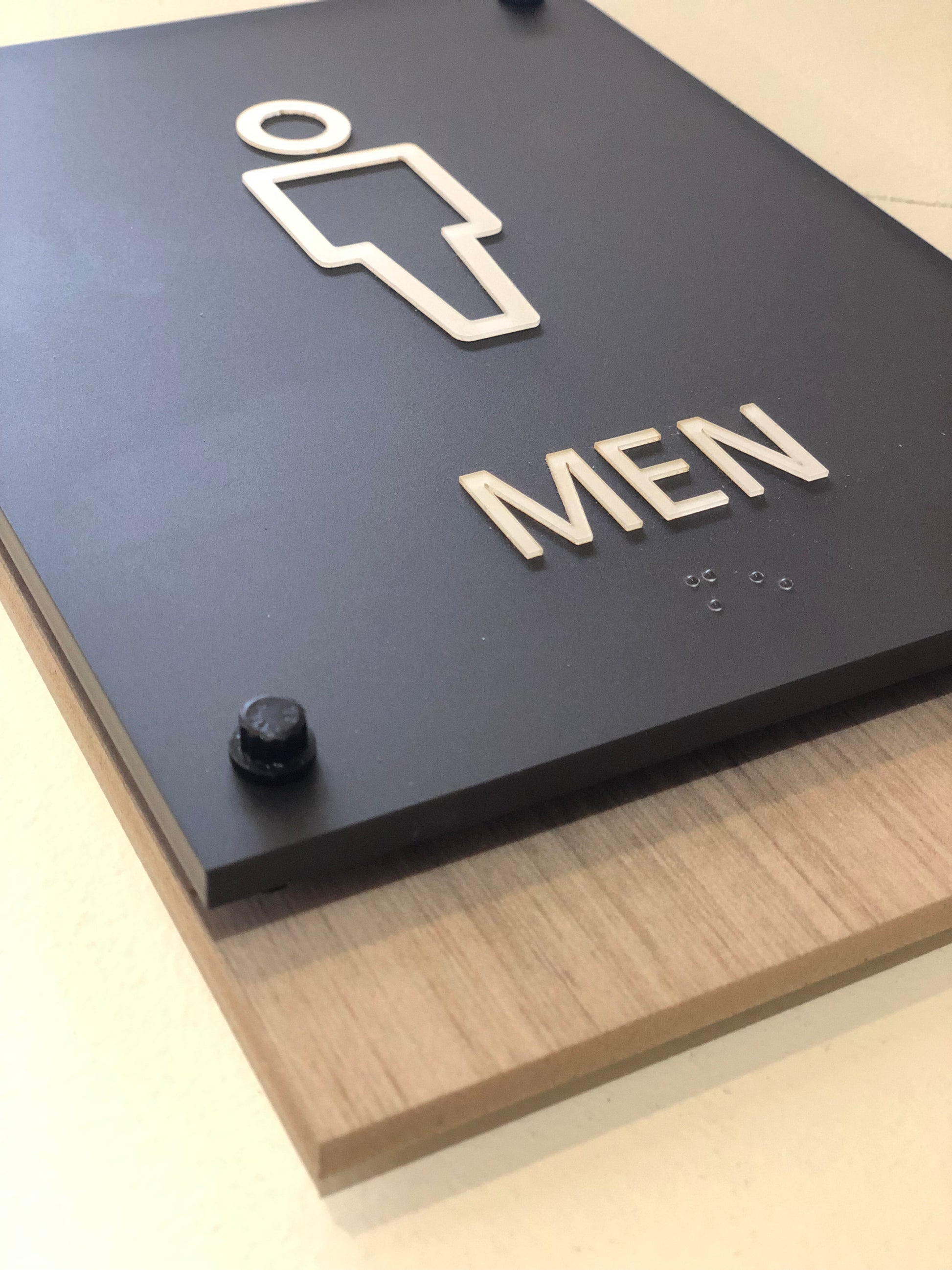 Take your work environment to a professional level with our selection of ADA compliant Restroom Signage. Each placard sign is comprised of a painted backer panel and 1/4" acrylic raised print braille panel.