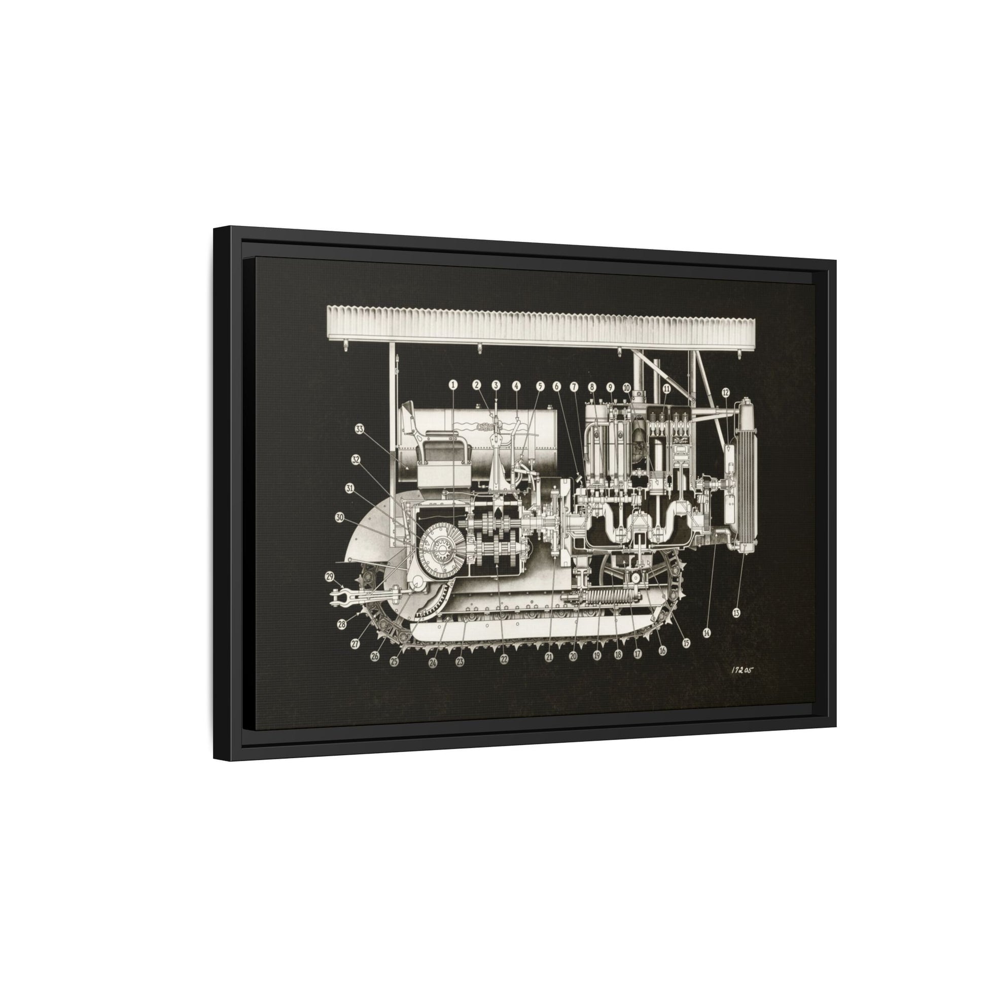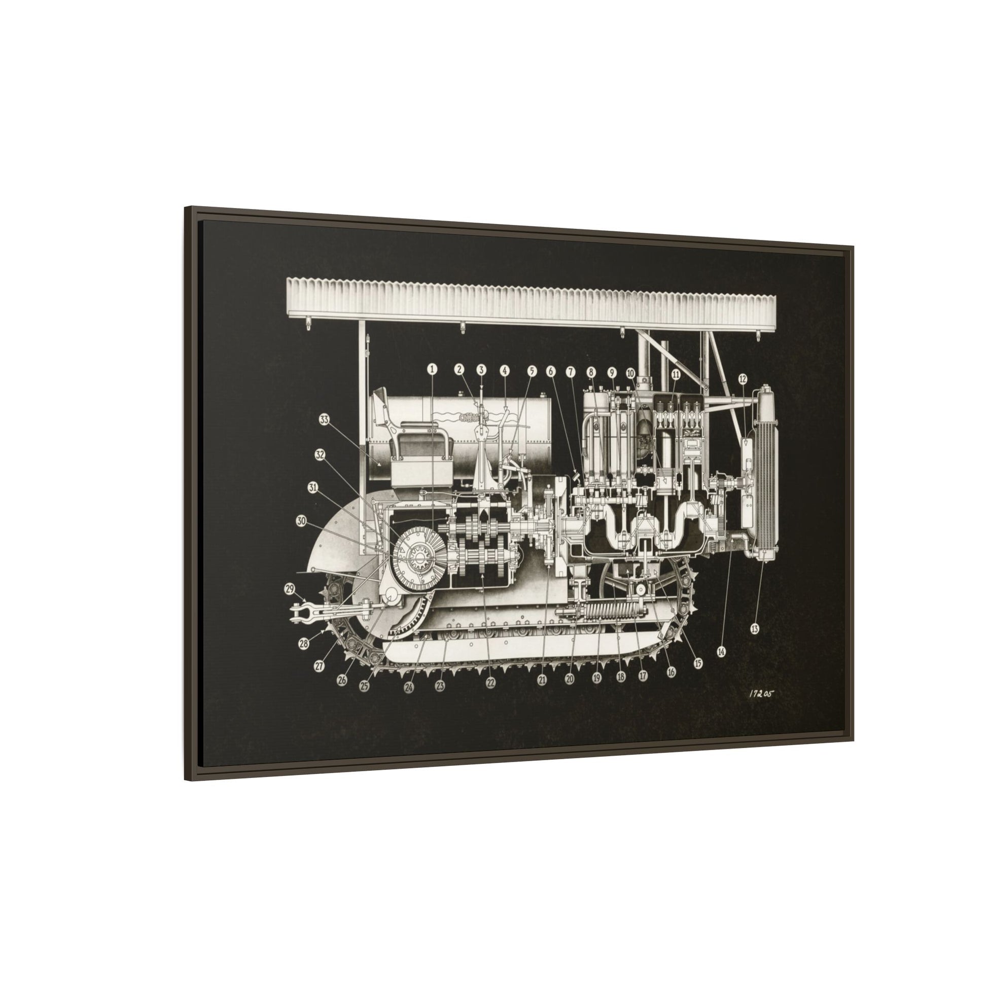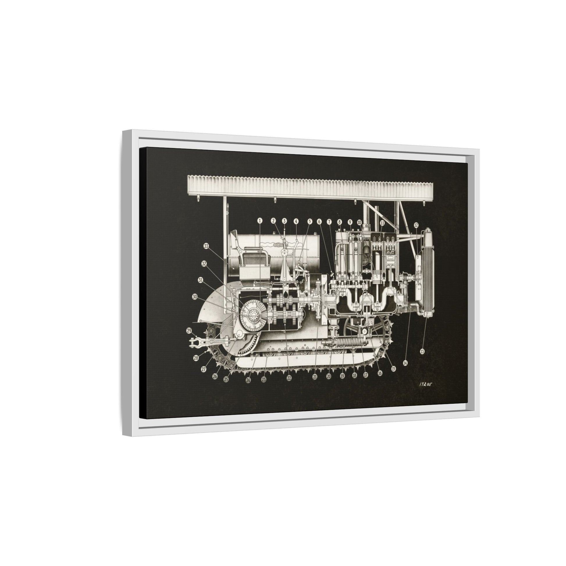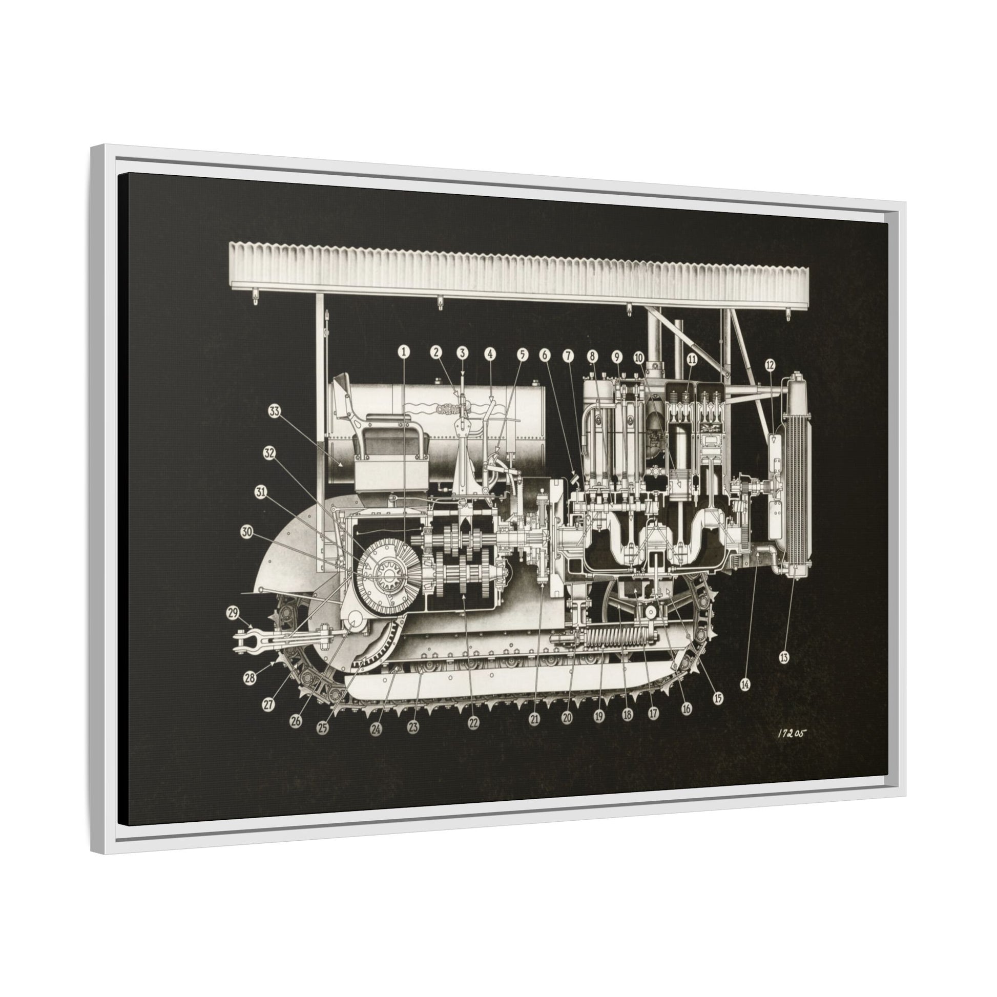 Vintage Engine Crawler Cutaway Engineering Drawing on Matte Canvas Framed | Industrial Wall Art