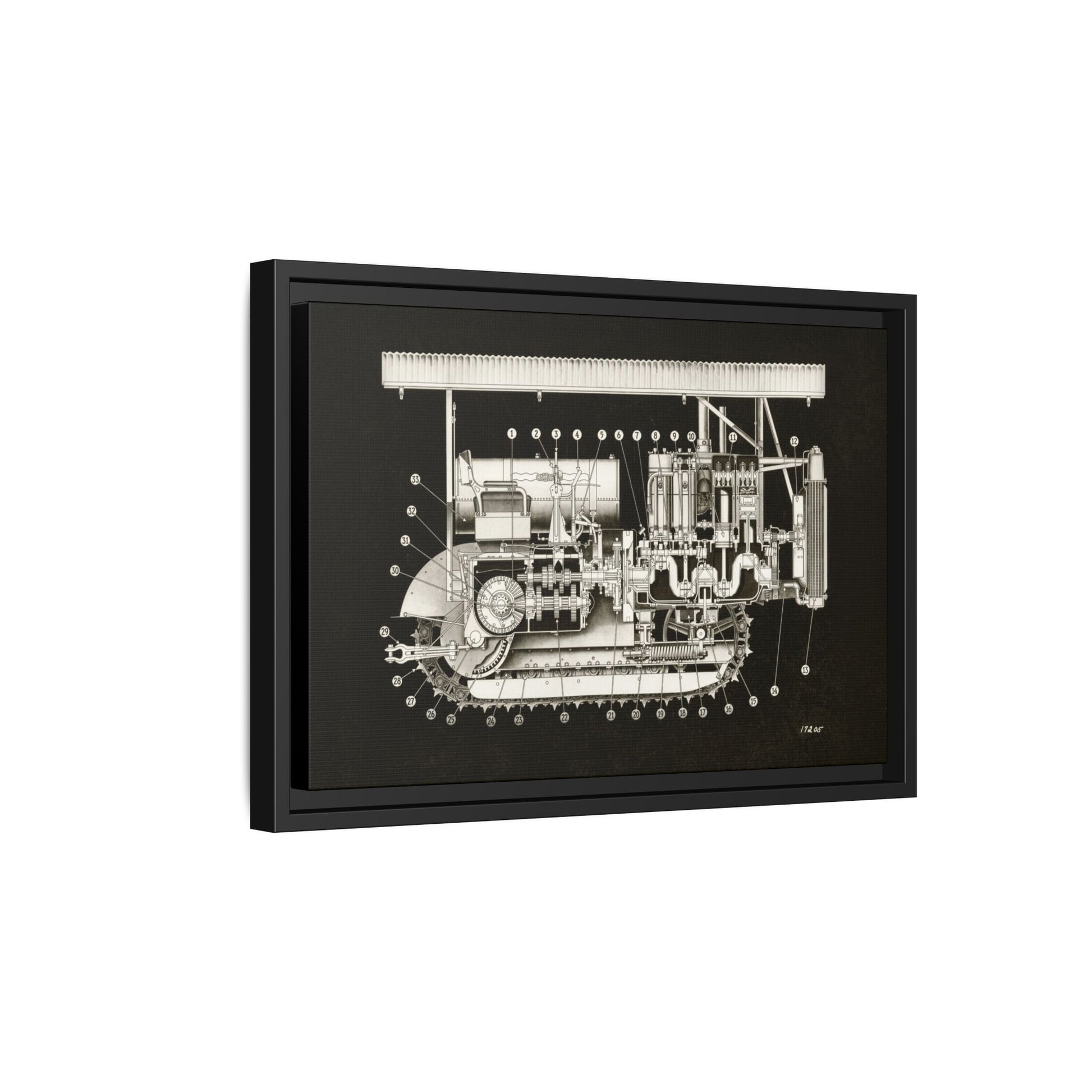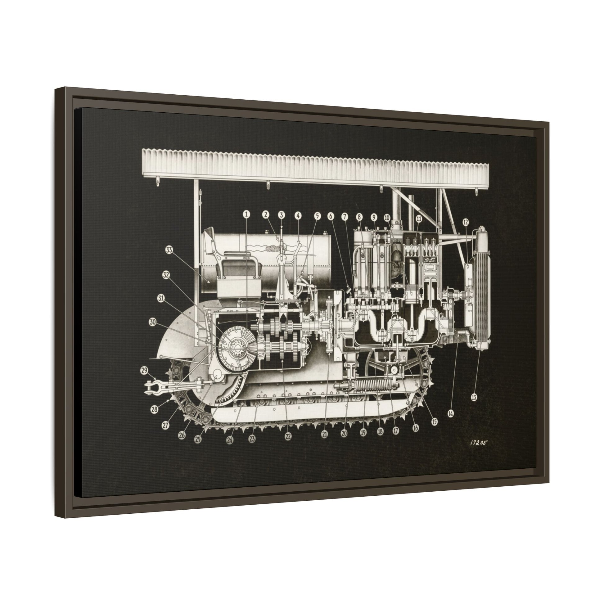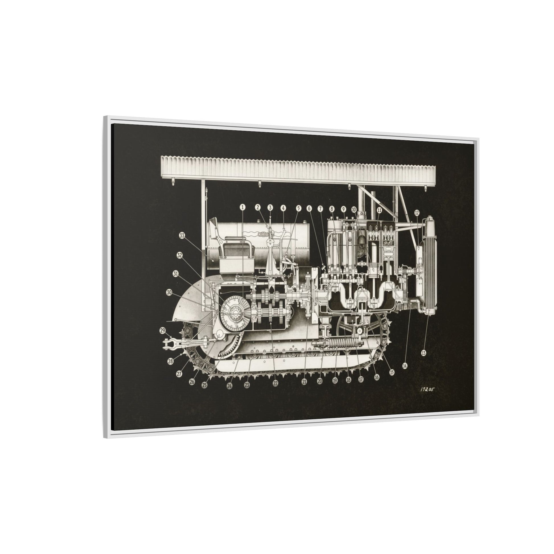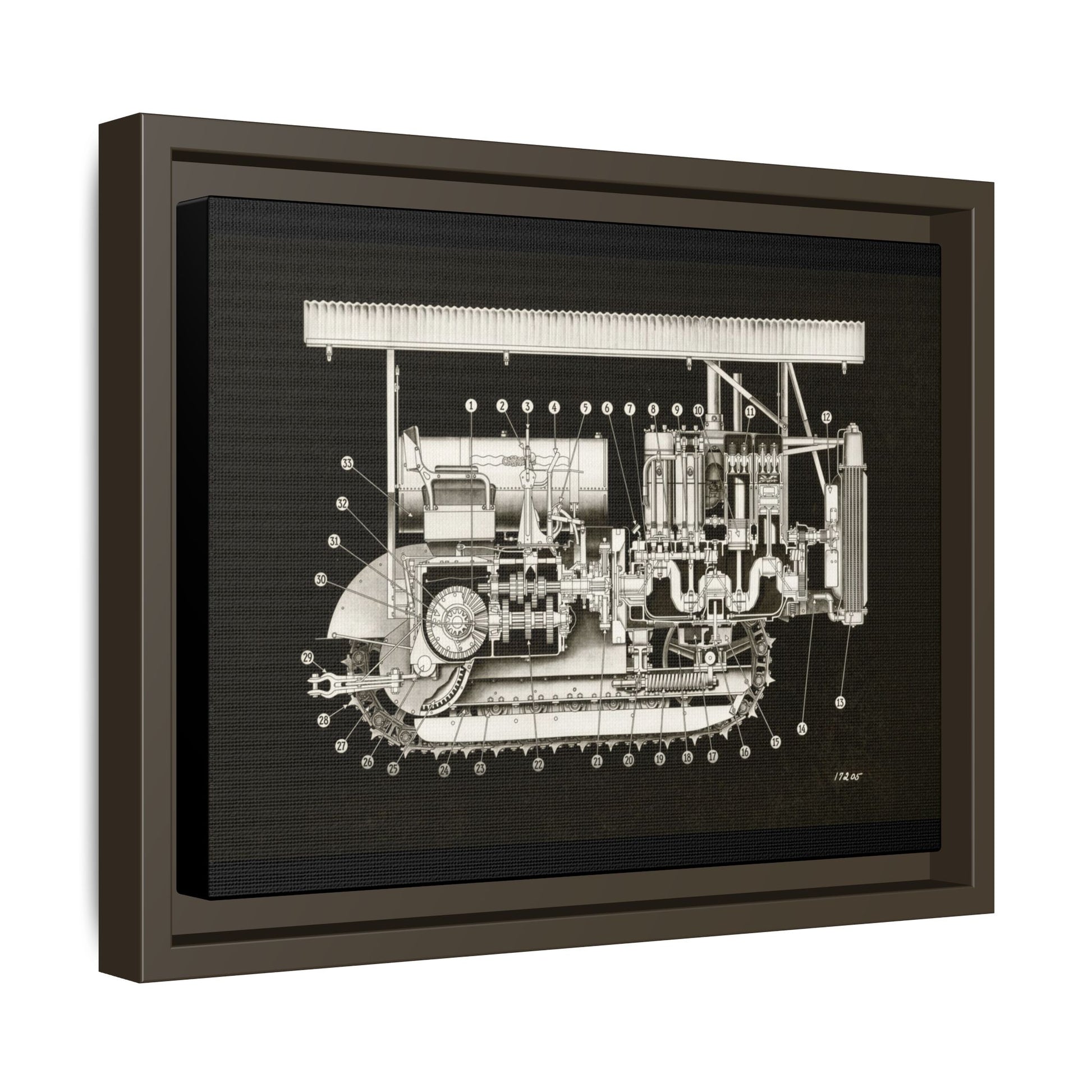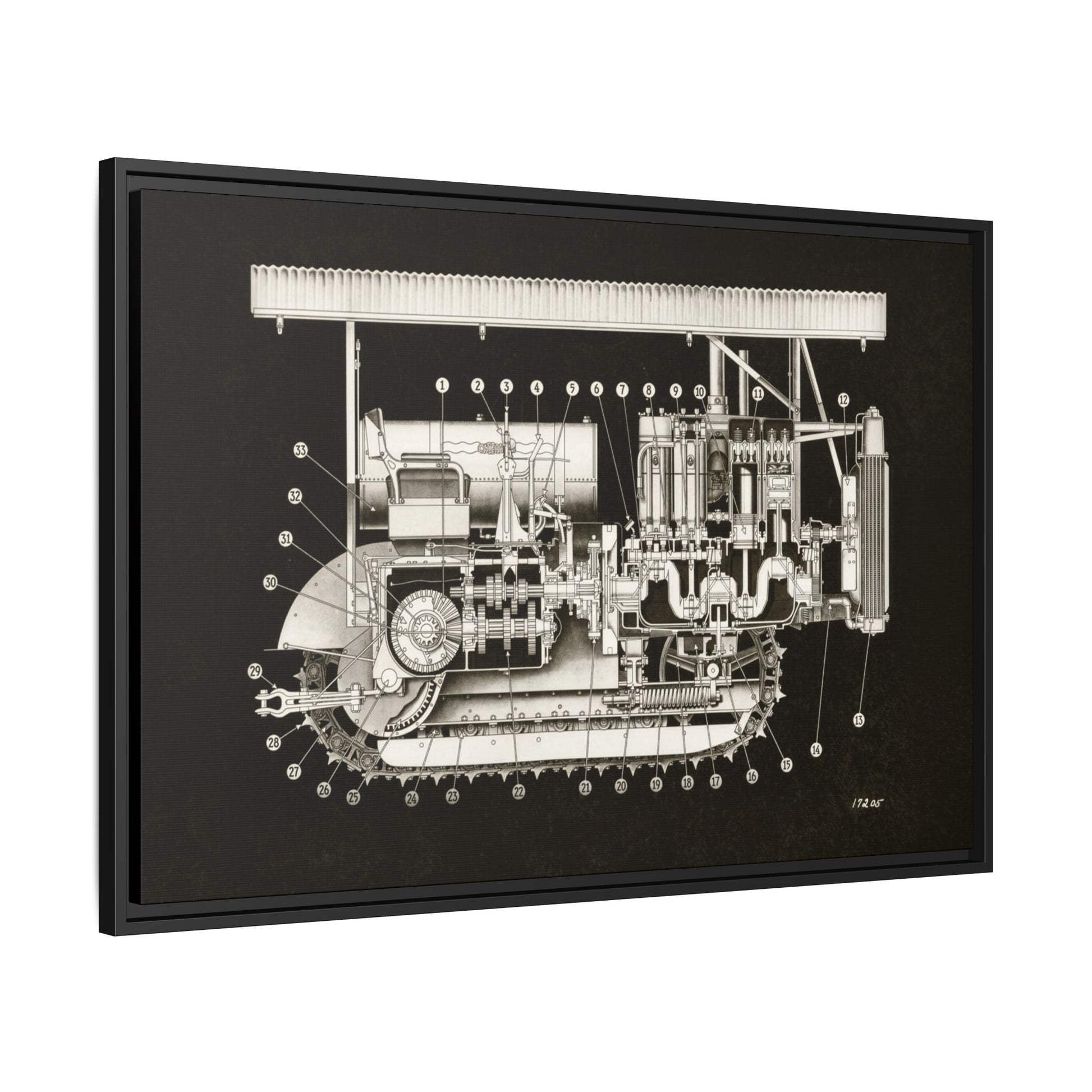 Vintage Engine Crawler Cutaway Engineering Drawing on Matte Canvas Framed | Industrial Wall Art