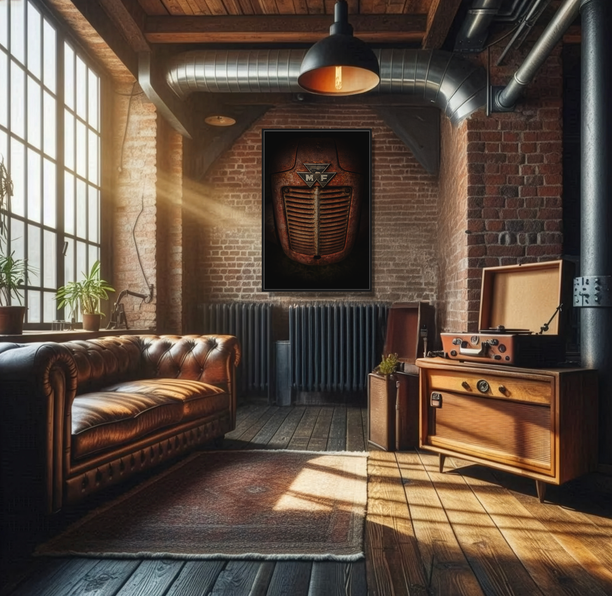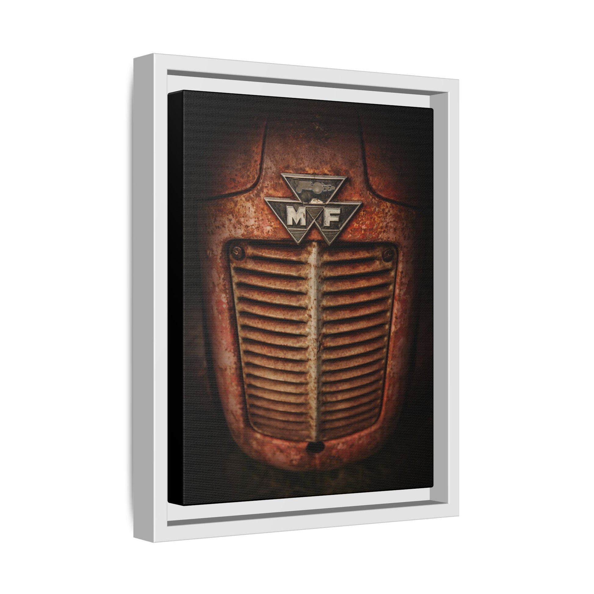Our framed matte canvas classic machine photos have been created to match the industrial, rustic aesthetic of your environment. Our Vintage Collection is a great supplement to any dealer showroom, board room, break areas, or even your own Massey Ferguson tribute showcase! The pine wood frame and matte finish keep reflections low and colors deep, so the image reads clearly from across the room. Choose a size and frame color to match your space.